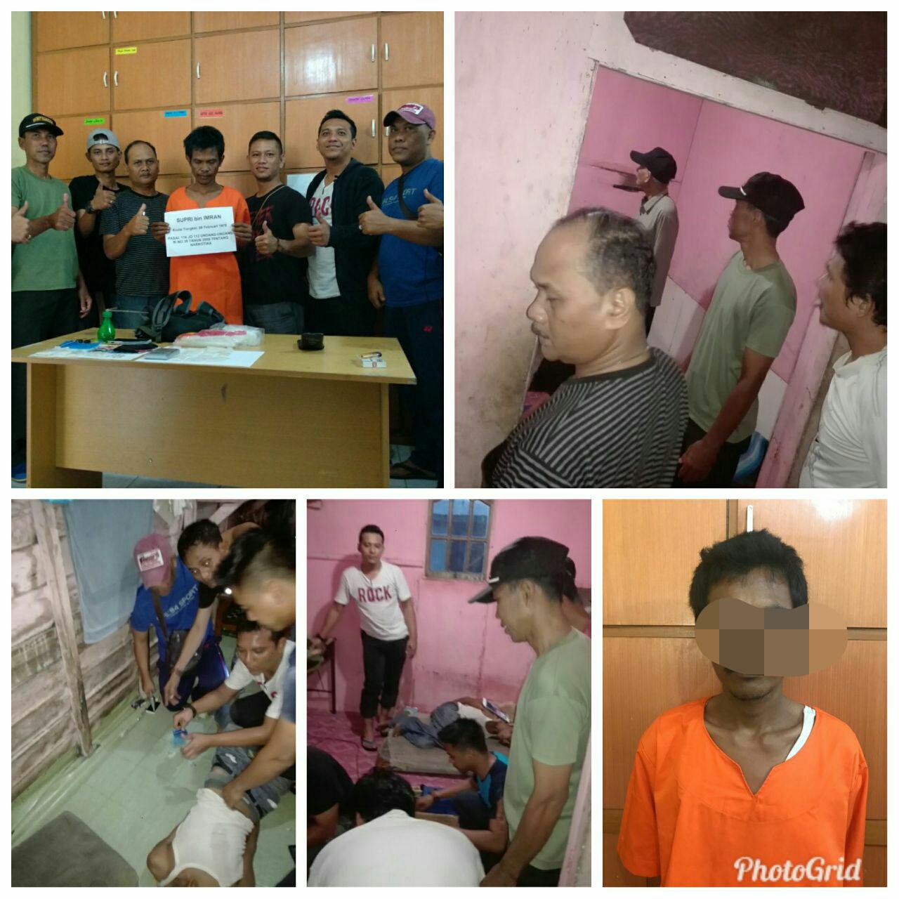 Hasil penyelidikan diketahui bahwa saudara Supri benar berada di bengkel tersebut. Selanjutnya sekira pukul 05.00 WIB dilakukan penggerebekan terhadap pelaku. Pelaku ditemukan berada di dalam kamar yang dilakukan penggeledahan dan berikut ditemukan barang bukti tersebut.