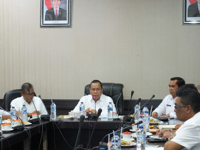 Bupati Kepulauan Meranti Drs. H Irwan MSi membuka evaluasi progres penginputan rencana umum pengadaan (RUP) di ruang rapat Melati Kantor Bupati Kepulauan Meranti (4/4).