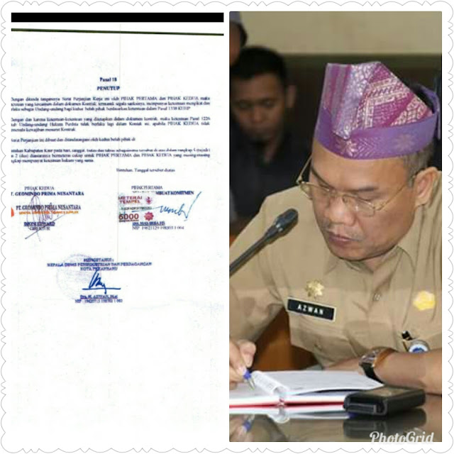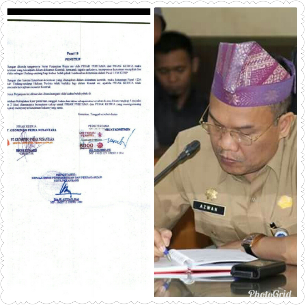 Setelah penelusuran lapangan, ternyata kontrak yang dibuat oleh Disperindag Kota Pekanbaru dibawah komando Drs. Azwan MSi ini tidak pernah ada alias fiktif. Kesannya bahwa ia sudah terbiasa melakukan hal semacam ini.