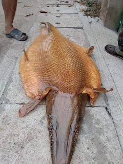 “Kata kawan saye dari Rangsang, yang penting dari kat sini juge,” ujarnya. Ardi pun belum mengetahui nama hewan blasteran buaya dan pari ini.