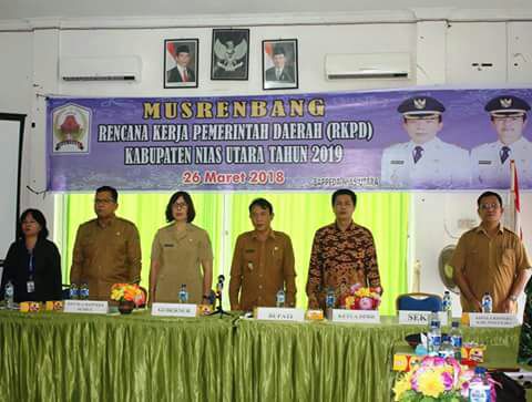 Musyawarah rencanaan pembangunan (Musrenbang) rencana kerja pembangunan daerah (RKPD) tahun 2019, secara resmi dibuka oleh Bupati Nias Utara M. Ingati Nazara.