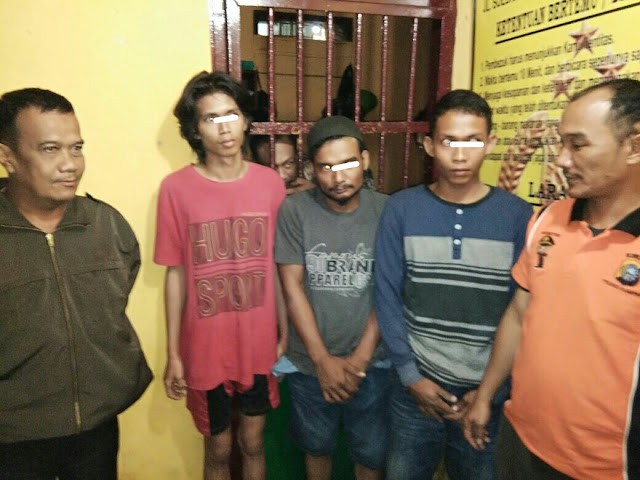Tim Opsnal Polsek Kampar Kiri amankan 3 pria yang tertangkap tangan sedang melakukan pesta shabu di Base Camp PT. PSPI Distrik Lipat Kain wilayah Kec. Kampar Kiri pada Selasa malam (27/3/2018) sekira pukul 21.45 WIB.