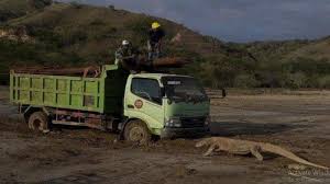 PUTERARIAU.COM – Ada pemandangan tak biasa terjadi di salah satu pulau di Taman Nasional Komodo,Pulau Rinca, saat seekor komodo tampak berhadap – hadapan dengan truk proyek yang akan melintas. Salah satu kawasan yang mengalami perubahan sejak disulap besar – besaran oleh pemerintah dan investor swasta sebagai destinasi wisata premium.