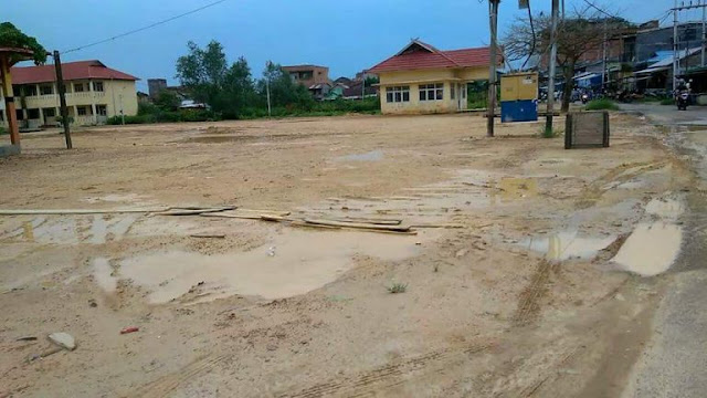Terlihat fasilitas Pasar Parit 1 yang akan menjadi tempat relokasi pedagang terdapat genangan air dan timbunan tanah kuning yang becek akibat musim hujan serta fasilitas air bersih yang menjadi kebutuhan pedagang. (Yud/tonang)