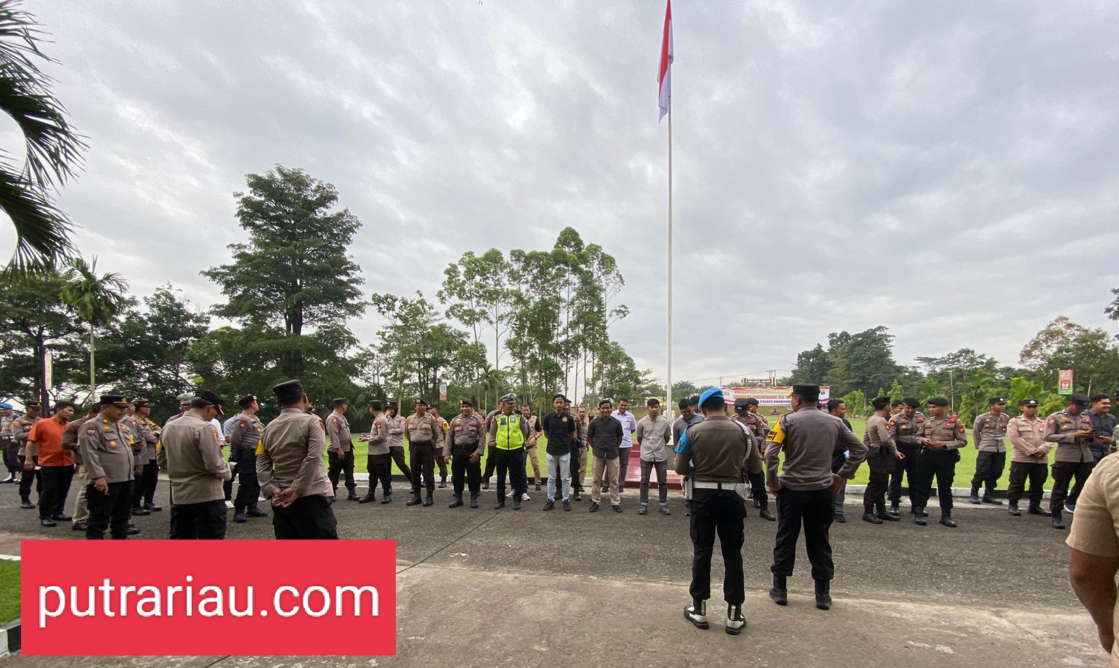 Foto : Kapolres Kuansing melakukan apel rutin operasi mantap Brata lancang kuning tahun 2023-2024, Di lapangan apel polres Kuansing,(Doc.putrariau.com/Humas polres Kuansing.